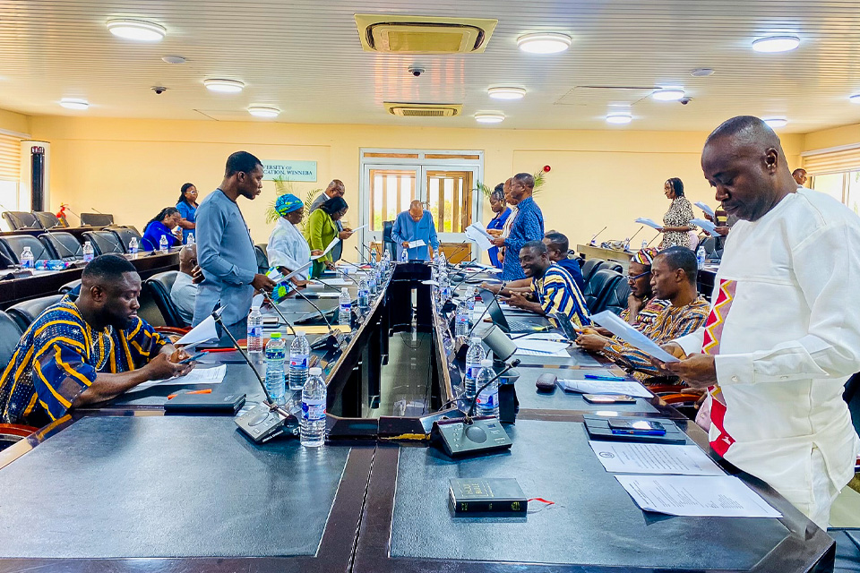 Justice Jacob Charles Amonoo-Monney, Chairman of the Governing Council of the University of Education, Winneba (UEW), on Monday, 13th October, 2025, inaugurated a 17-member Board for the University’s Endowment Trust Fund (ETFB) at the Council Chamber of the University.