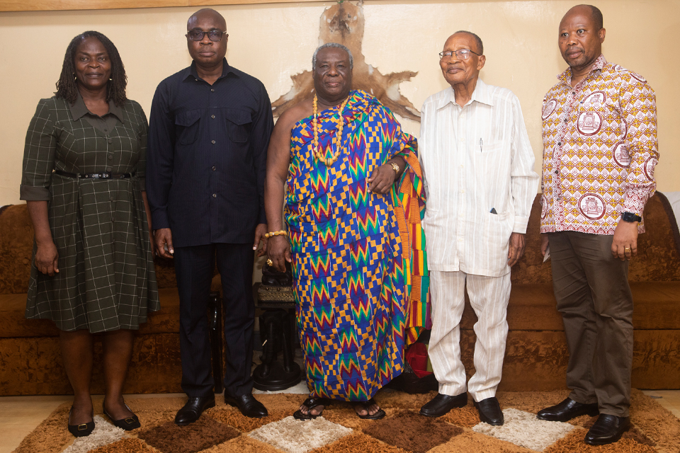 Management of the University of Education, Winneba (UEW) on Thursday, 8th May 2025, paid a courtesy call on the Chancellor, Neenyi Ghartey VII, to formally introduce the newly appointed Council Chair, Justice Jacob Charles Amonoo-Monney.