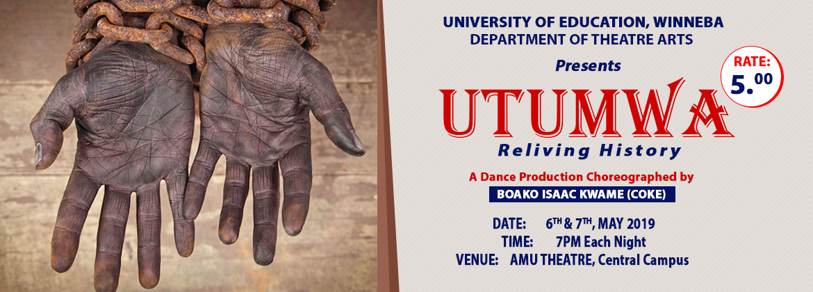 The Department of Theatre Arts, UEW presents “UTUMWA”, Reliving History, a dance production choreographed by Boako Isaac Kwame (COKE).