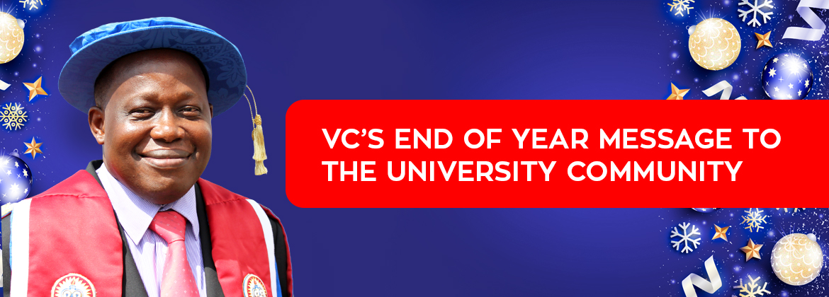 Colleague Lecturers, Staff, Students, Members of the University community, Season's Greetings to you all. I know you are looking forward to the coming Christmas and the rest of the holidays that lie ahead of us. It is also that time of the year when you take some rest, spend time with your family, friends and loved ones and, as well make merry, because another Christmas is here again.