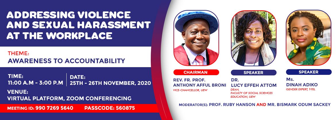 As part of efforts to mark this year's 16 days of Activism, The Gender Mainstreaming Directorate is organizing a 2-day workshop for Staff and Students to raise awareness on Sexual Harassment. This event will be held on the institutional Zoom platform scheduled as follows: