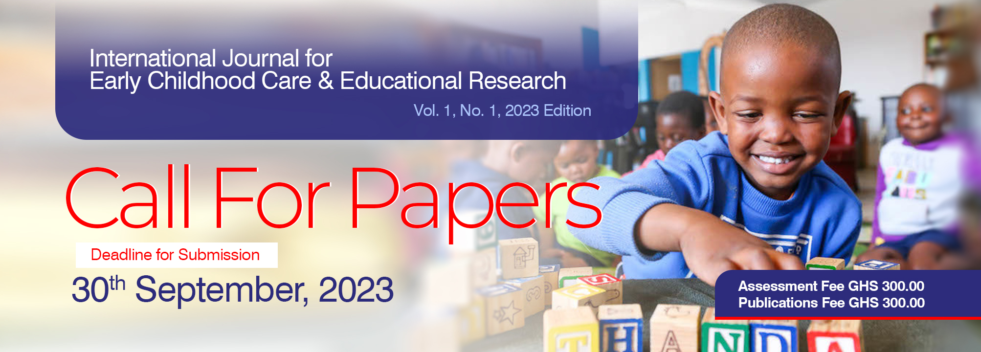 Empirical and position papers in Early Childhood Education, Basic education, and other related areas are hereby requested for publication in the International Journal for Early Childhood and Educational Research Vol 1, No 1, 2023 Edition.