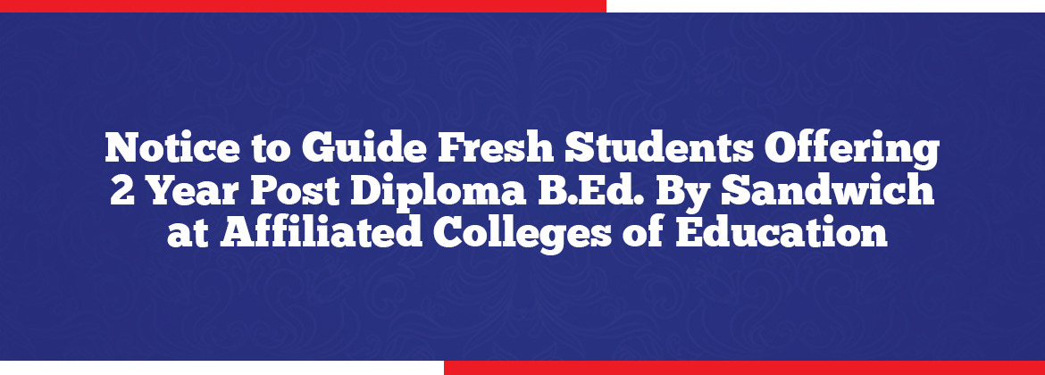 Notice to Guide Fresh Students Offering 2 Year Post Diploma B.Ed. By Sandwich at Affiliated Colleges of Education