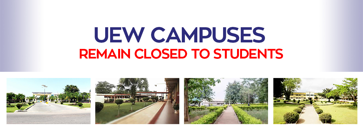 Theshutdown of the University, particularly for all academic activities, was at the instance of His Excellency, Nana AddoDankwaAkuffoAddo, the President of the Republic of Ghana and the University remains so closed for such purposes. Students are not allowed to use the classrooms, offices, and other UEW facilitiesfor the purpose of teaching, learning and all other related academic activities.
