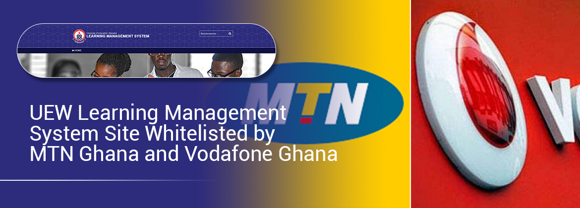 Management of the University of Education, Winneba (UEW) wishes to inform Staff as well as students of the University that MTN Ghana and Vodafone Ghana have whitelisted our Online Learning Management System site (moodle.uew.edu.gh)