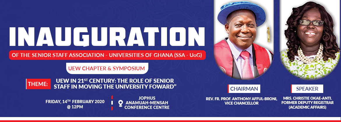 The Executive, Planning Committee and entire membership of Senior Staff Association - Universities of Ghana (SSA-UoG), University of Education, Winneba Chapter is officially having its Inauguration Ceremony scheduled as follows: