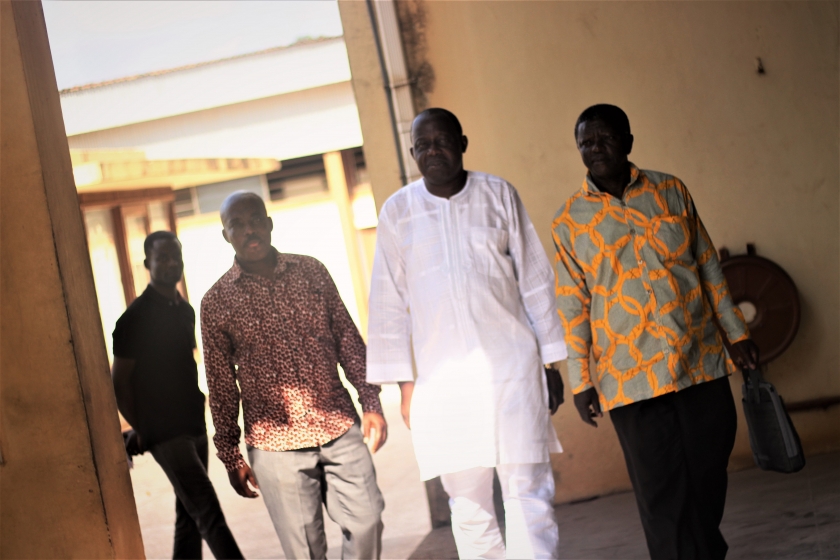 Ag. Principal of COLTEK, Prof. Frederick Kwaku Sarfo and Mr. Joseph Asomani, Lecturer, conducting Rev. Fr. Prof. Afful-Broni round the campus