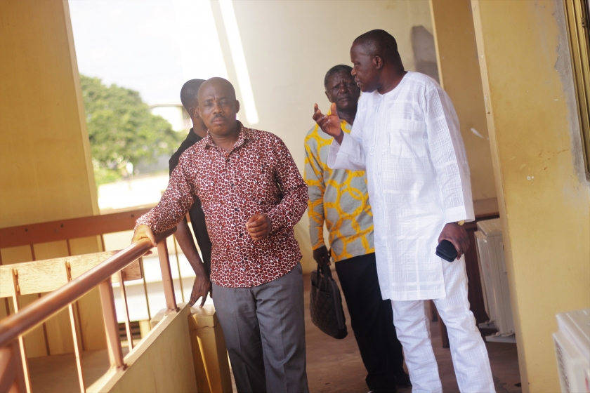 The Ag. Vice-Chancellor first visited sites of various ongoing construction projects and then moved to the lecture halls to interact with lecturers and students. Such visits, he explained, would not only create the means for him to draw closer to the staff and students but also help in apprising himself with the real conditions on the various campuses of the University and motivate staff to continue to work hard.