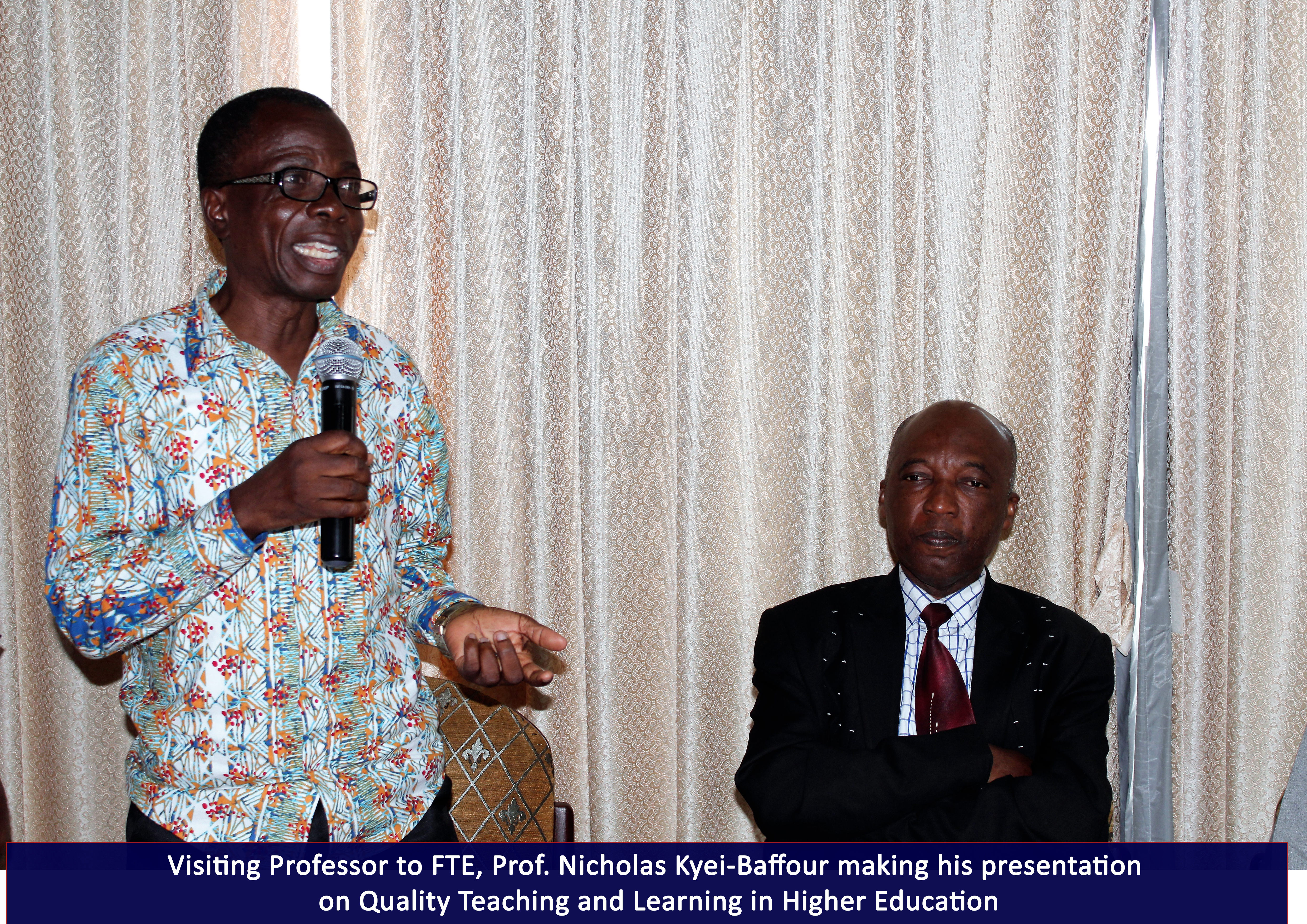 Prof. Stephen Jobson Mitchual reminded participants of the Faculty’s focus to expand and improve teaching, a situation that required that they dug deep into thinking and brought up innovative ideas to make the FTE better. “In the near future, we should be able to increase our currently four departments to about 10 or even evolved into four Faculties”, he said brimming with hope. Prof. (Ing.) Nicholas Kyei-Baffour (a visiting professor) presented a paper on “Teaching and Learning in Higher Education” to participants in which he asked lecturers to change their approach to teaching so students would move away from always chewing and pouring to learning that makes them creative and entrepreneurial.