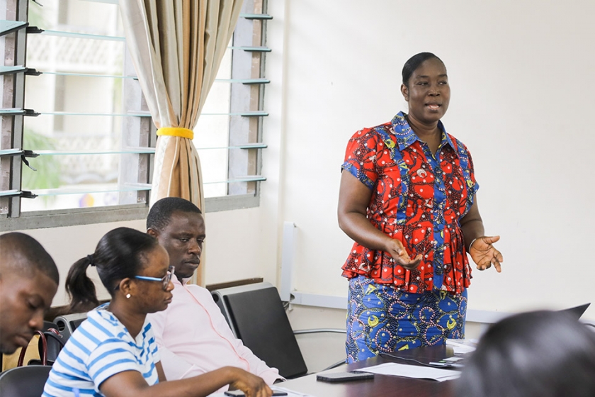 Mrs. Ekua Abedi-Boafo (standing), explaining the responsibilities of a secretary and how to write minutes and reports to participants