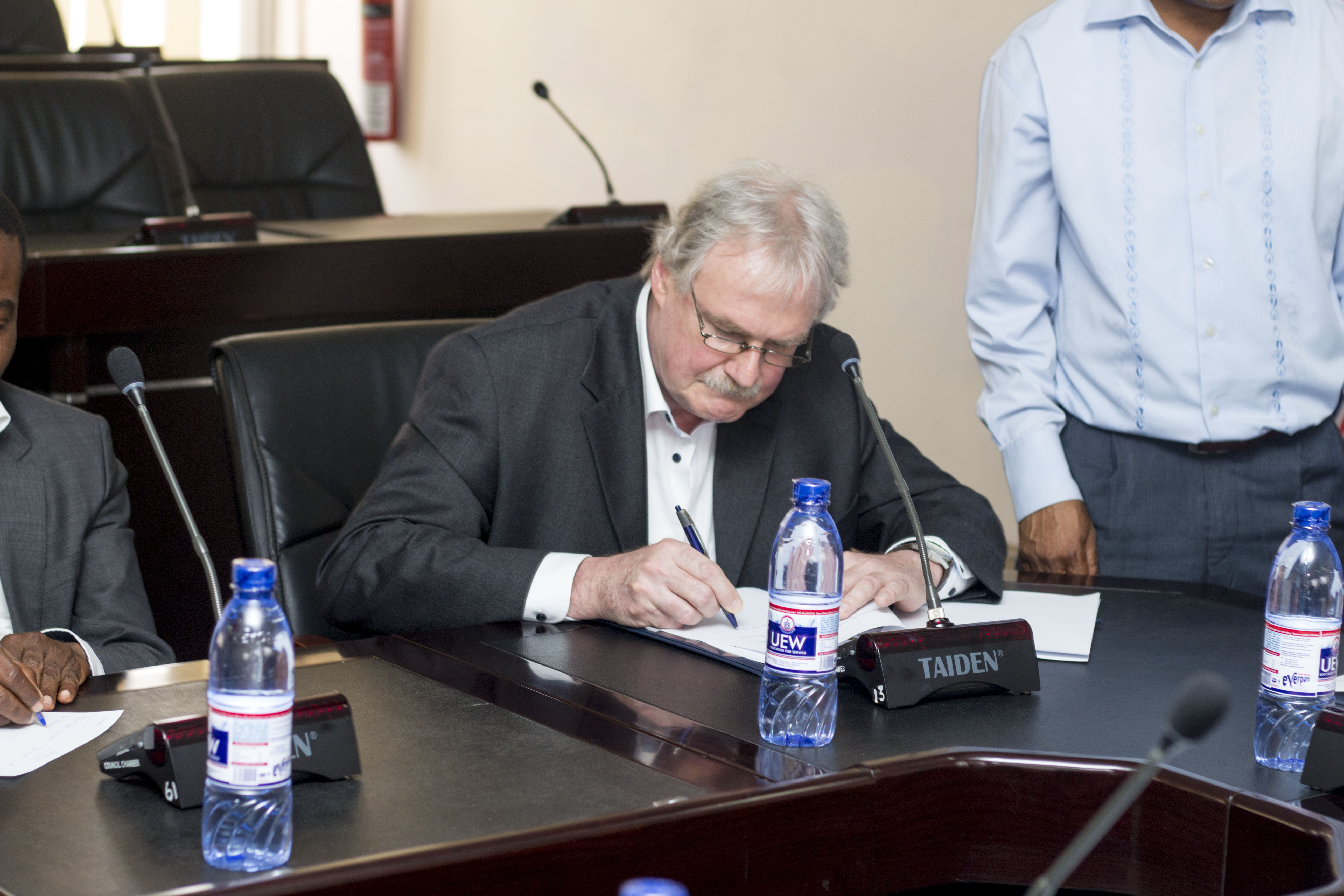The leader of the delegation of the University of Frankfurt, Prof. Dr. Rainer Vossen (Acting Head of the Department of African Studies), was happy about the finalization of the Memorandum of Understanding. He observed that it was an important step towards developing a fruitful and a prosperous relationship between the two institutions. He was optimistic that the agreement will succeed considering the levels of commitment shown from its initial stages of implementation.