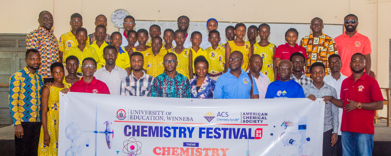 DCE-UEW Hosts 'Kitchen Chemistry' Festival at Mando SHS Read More DCE-UEW Inspires 100 Learners Through Chemistry Festival at Kojo Beedu Read More DCE-UEW Inspires JHS Learners with Outreach Festival Read More Chemistry Outreach Programmes Read More DCE-UEW Seminar Empowers Students to Seize Global Opportunities Read More UEW Launches American Chemical Society Student Chapter Read More Prof. Ruby Hanson with Partners Awarded European Grant for Teacher Education in Africa Read More UEW Female Faculty Members Lead Historic African Conference for Women in STEM Read More UEW Holds Chemistry Festival for Selected Schools in Ajumako Read More UEW Chemistry Outreach Programme Promotes STEM Education Read More 0123456789 Faculty News DCE-UEW Hosts 'Kitchen Chemistry' Festival at Mando SHS DCE-UEW Inspires 100 Learners Through Chemistry Festival at Kojo Beedu DCE-UEW Inspires JHS Learners with Outreach Festival DCE-UEW Seminar Empowers Students to Seize Global Opportunities