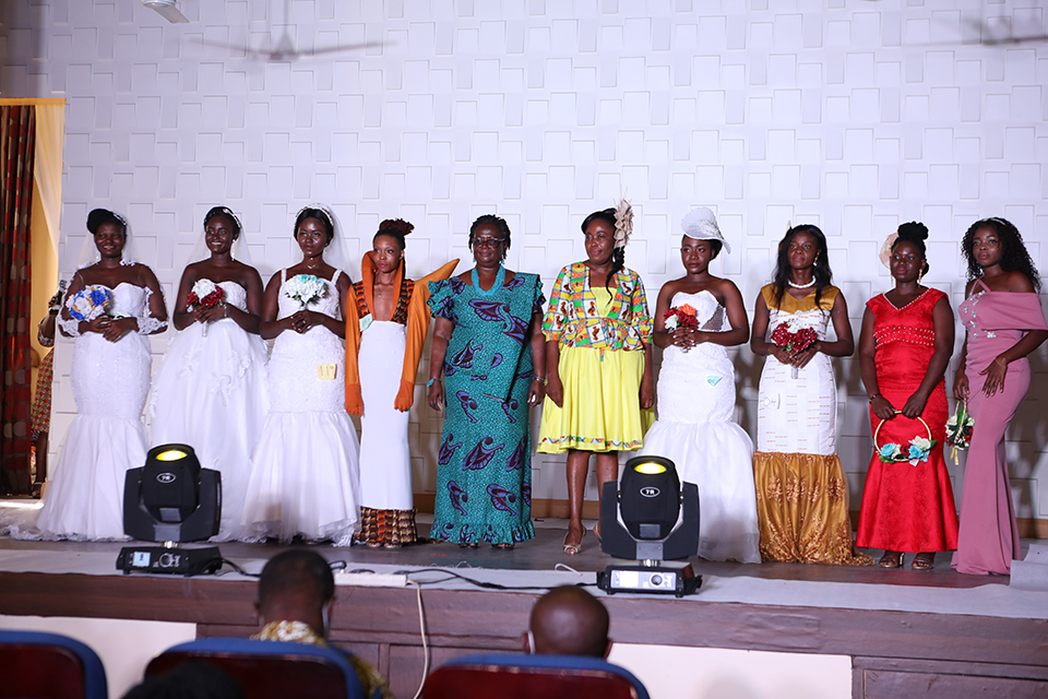 The fashion show, held at the North Campus Conference Hall, saw elegant modelling displays of formal wear, cocktail dresses, ‘Avant Garde’, evening gowns, bride’s maids/groom’s men and bridal gowns/groom suits all sewed by the final year students.