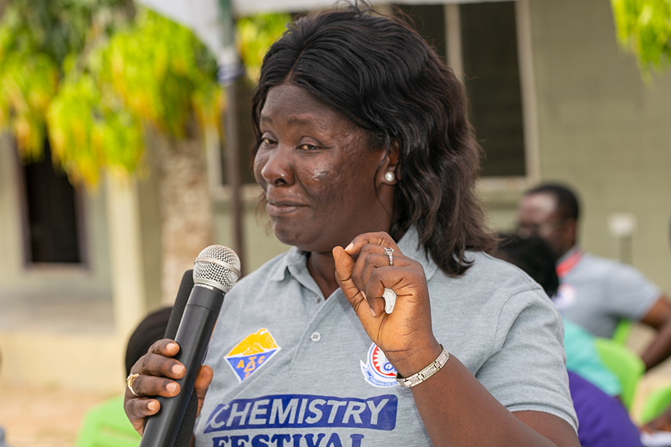 The Deputy Registrar, Division of Human Resource, Mrs. Deborah Afful, represented the Ag. Registrar, Mrs. Wilhelmina Tete-Mensah. In her remarks, she lauded the project team for the apt theme for the festival. She urged participants to listen attentively and observe whatever happened to understand chemistry concepts as a part of their daily lives.