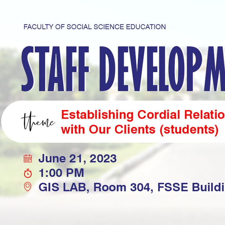 The Faculty of Social Science Education is organizing a staff development seminar for its faculty staff members. The seminar is scheduled to take off as follows: