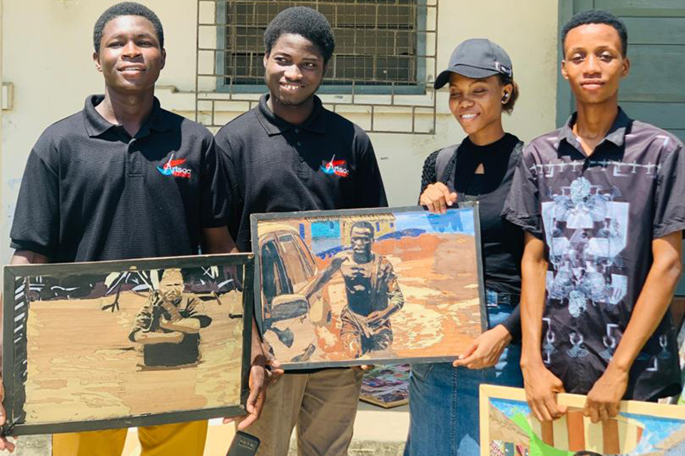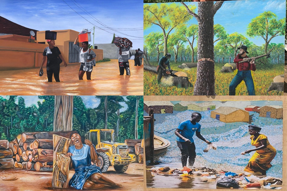 Through their work, the students critically engaged with issues such as illegal mining, deforestation, flooding, drought and industrial pollution. These were rendered in diverse artistic techniques including painting, pyrography, printmaking, collage, mosaic, marquetry and photomontage—reflecting a break from academic conventions while maintaining technical rigour.