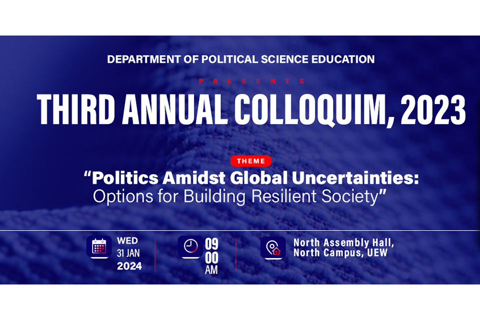 The Department of Political Science Education is organising a third annual Colloquium, 2023 on the theme: "Politics Amidst Global Uncertainties: Option for Building Resilient Society".
