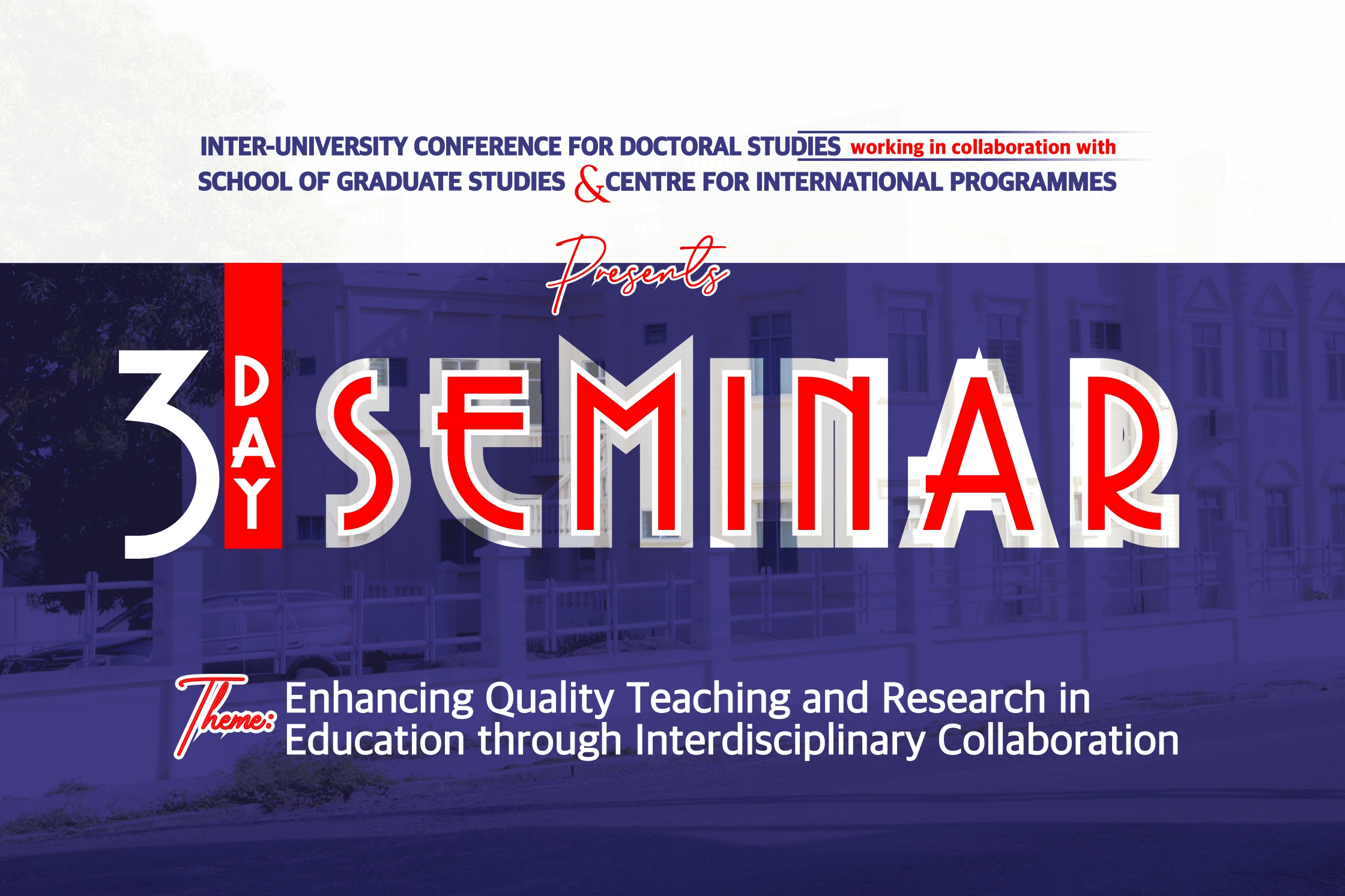 The Inter-University Conference for Doctoral Studies, in collaboration with the School of Graduate Studies and the Centre for International Programmes, is hosting a three-day seminar on the theme: "Enhancing Quality Teaching and Research in Education through Interdisciplinary Collaboration."