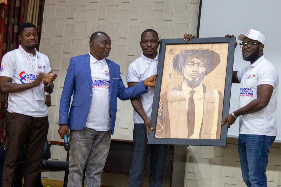 Prof. Benjamin Ghansah (right) receiving a personalised portrait from the IMCfPS Planning Committee in recognition of his contribution
