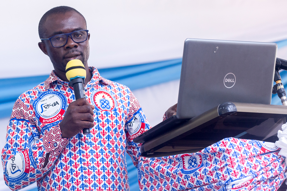 Guest speaker Prof. Peter Akayuure also addressed the gathering, underscoring the essential contributions of various faculty members in advancing mathematics education. He introduced key figures in the department and elaborated on the different branches of mathematics, including pure mathematics, applied mathematics, and mathematics education. He encouraged students to consider mathematics beyond the classroom and recognise its presence in art, music, and architecture.