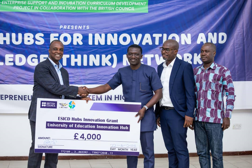 The University of Education, Winneba (UEW) School of Business Innovation Hub has received a £4,000 grant to bolster small and medium-sized enterprises (SMEs) through an Enterprise Support and Innovation Curriculum Development (ESICD) initiative.