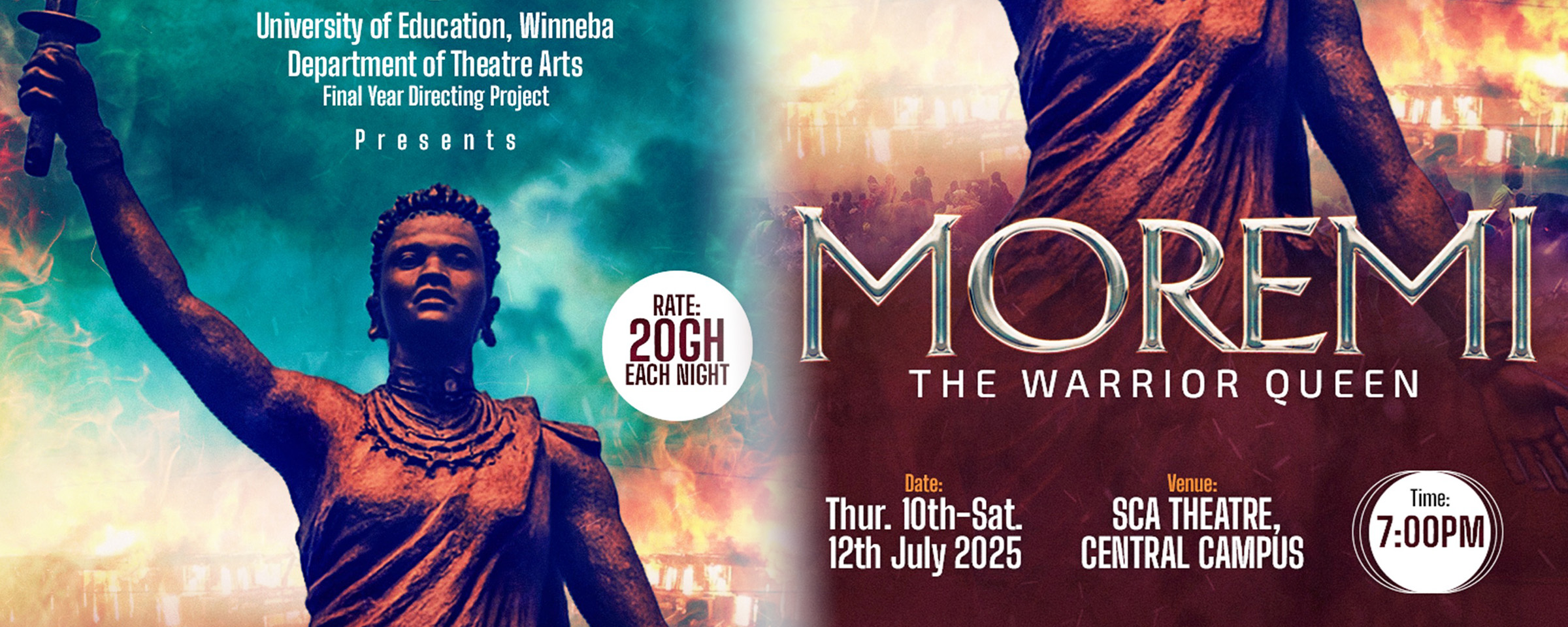 The Department of Theatre Arts, University of Education, Winneba, is pleased to present “Moremi”, a classic tale of courage and sacrifice brought to life on stage.